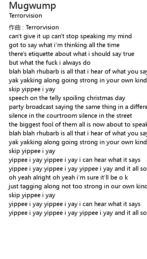 | yippee i yay yippee i yay yippee i yay and it all sounds the same |