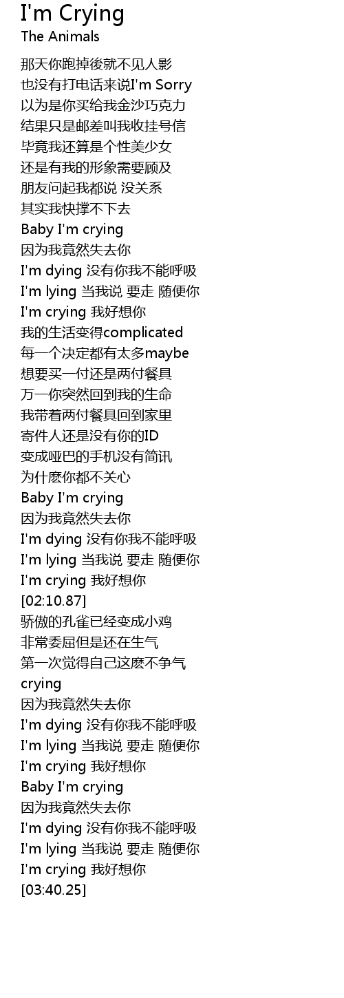 | [03:28.46] | I' m crying wo hao xiang ni |
