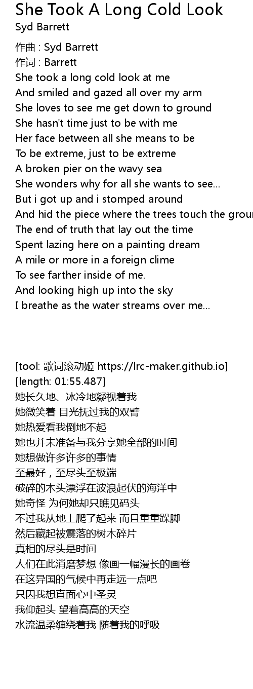 | [00:02.637] | 她长久地、冰冷地凝视着我 |