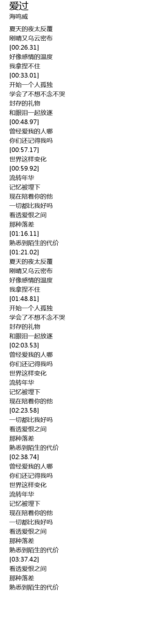| [03:31.12] | 熟悉到陌生的代价 |