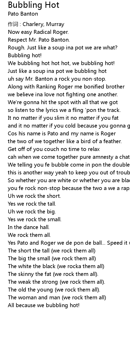 | Just like a soup ina pot we bubbling hot | |