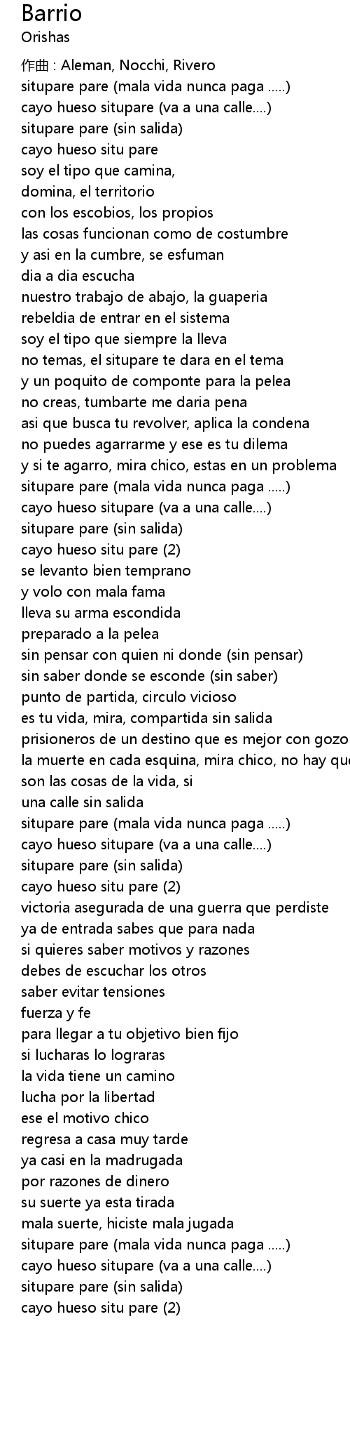| 歌曲 | Barrio |
