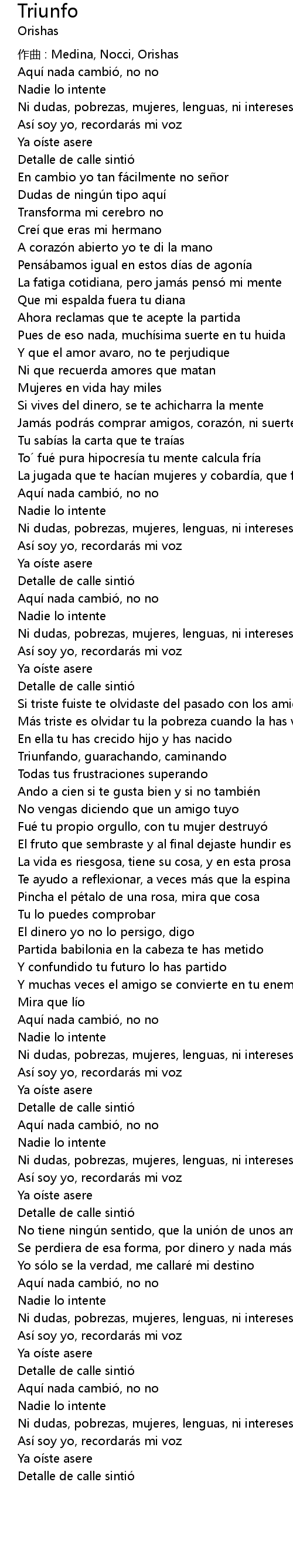 | 作曲 : Medina, Nocci, Orishas | |