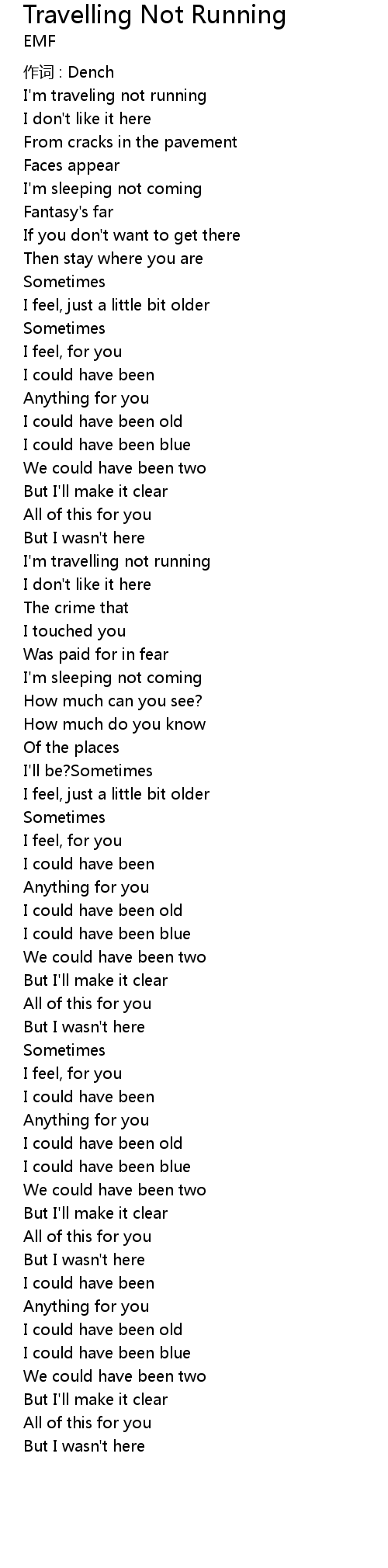 | 歌曲 | Travelling Not Running |