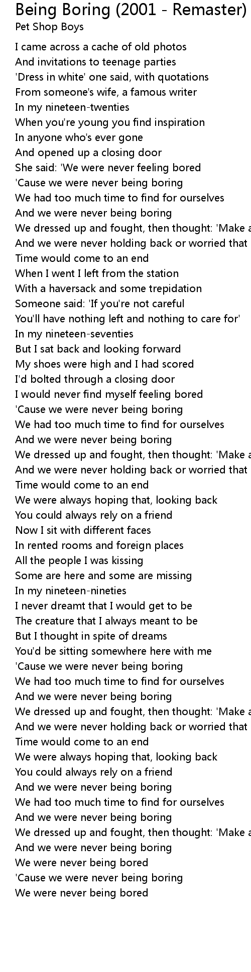 'Cause we were never being boring |