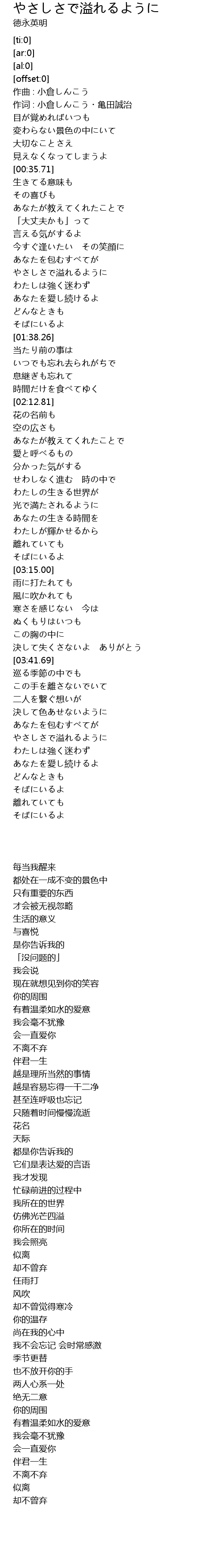 | [04:15.69] | やさしさで溢れるように |