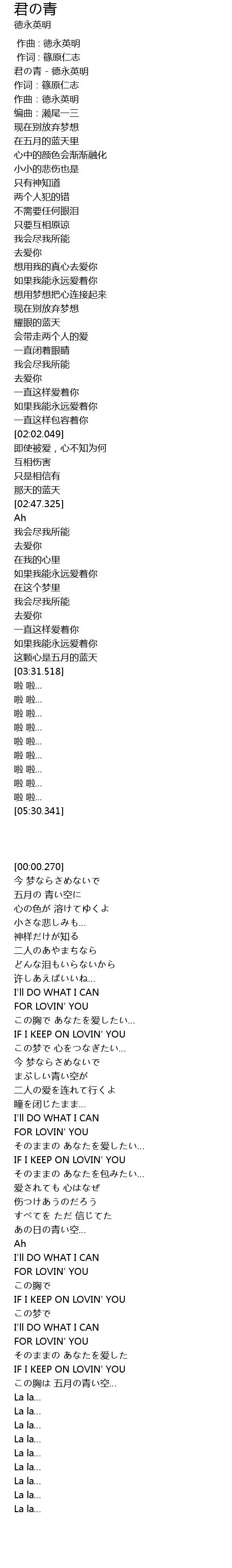 | [00:00.000] | 君の青 - 德永英明 |