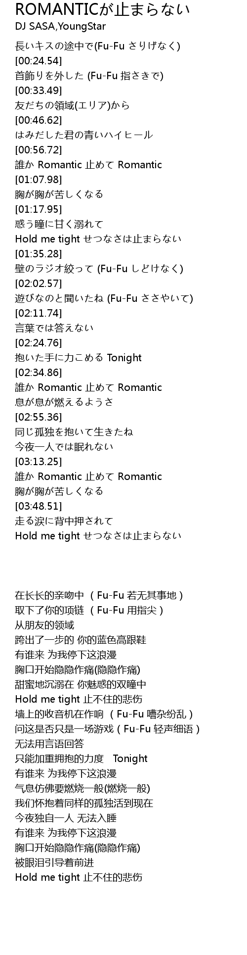 | [03:31.72] | shuí Romantic zhǐ Romantic |