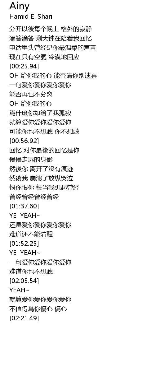 | [02:13.10] | jiu suan ai ni ai ni ai ni ai ni |