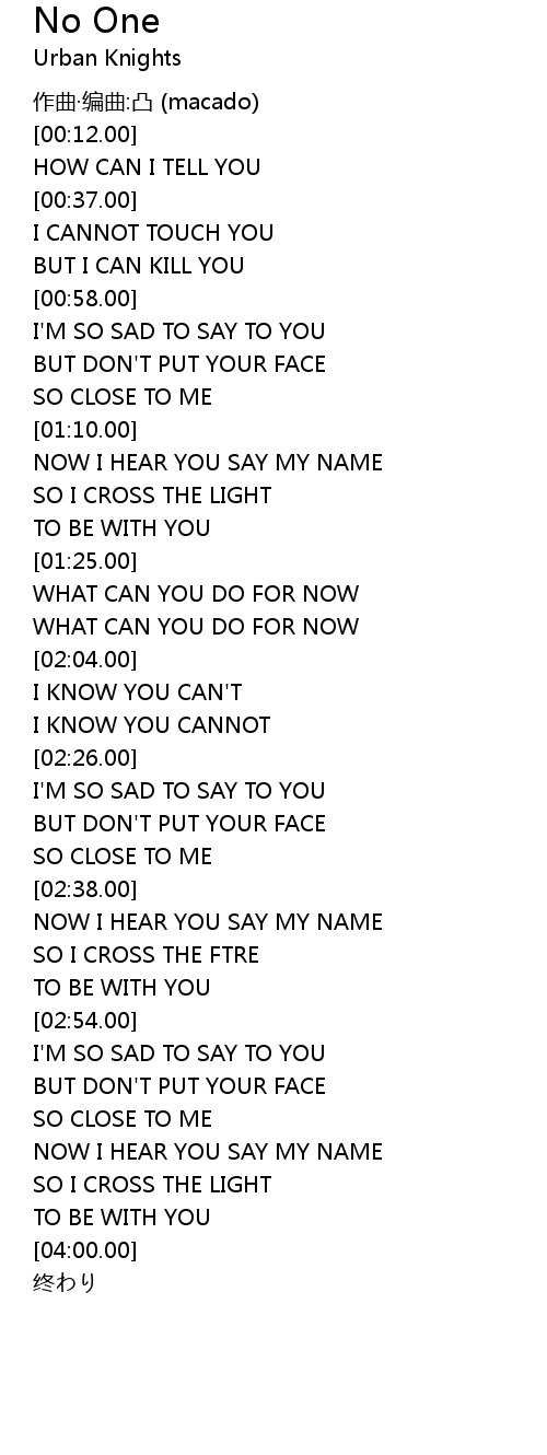 | [02:17.50] | I KNOW YOU CANNOT |