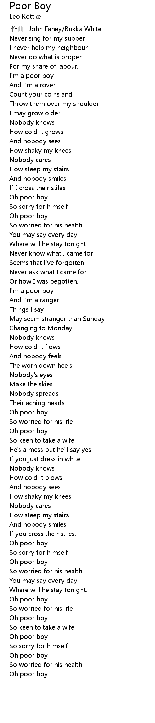 | [03:01.44] | Oh poor boy |