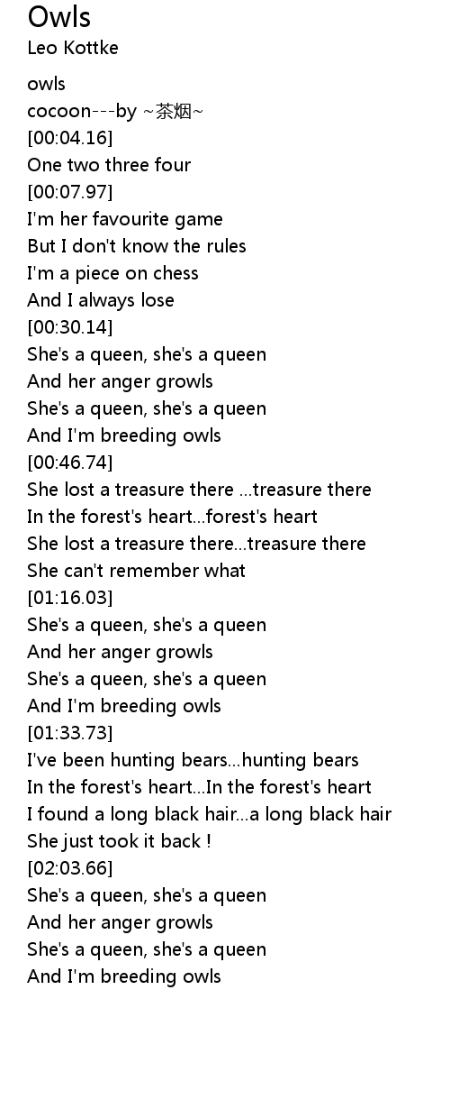 | [01:02.00] | She lost a treasure there ... treasure there |