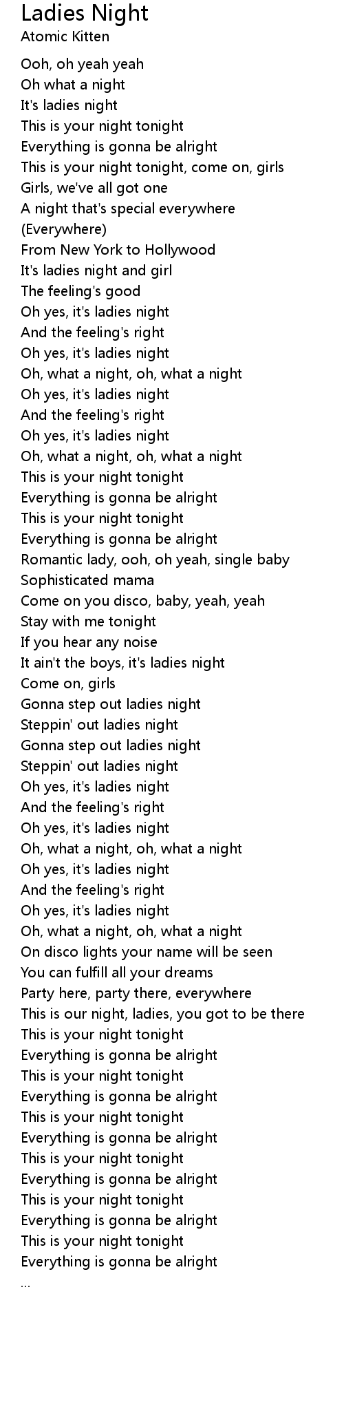 It's ladies night and girl |