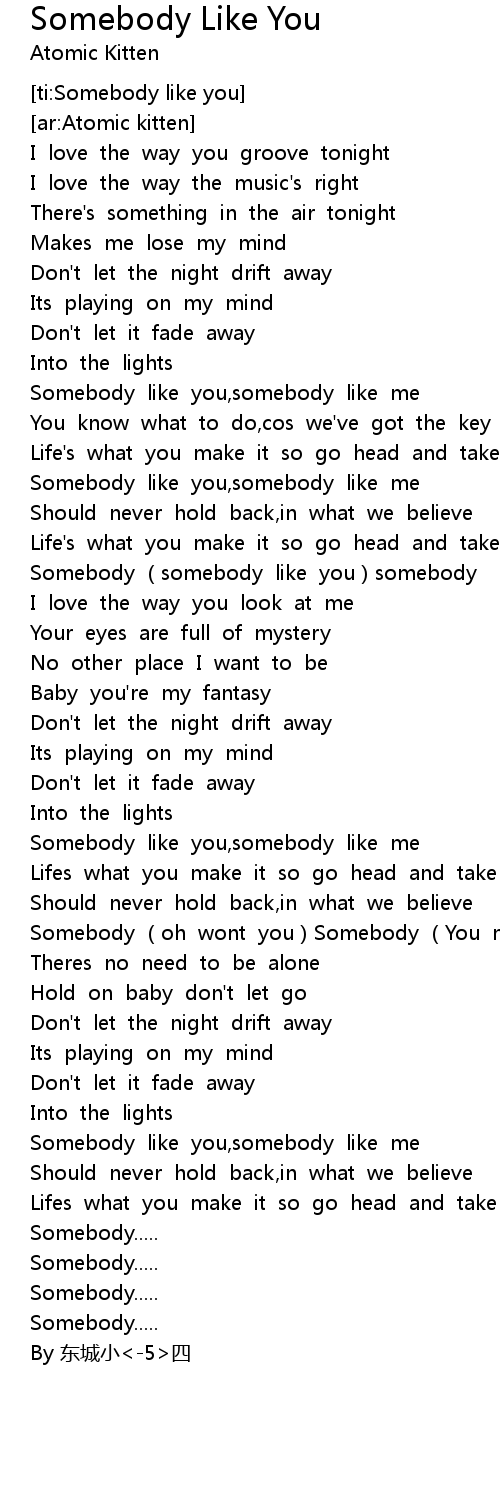 | [01:17.98] | Somebody somebody like you somebody |