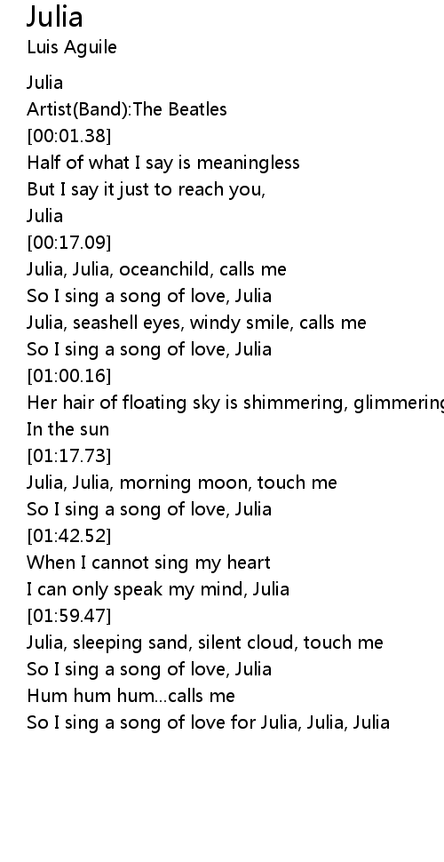 [00:37.21] Julia, seashell eyes, windy smile, calls me