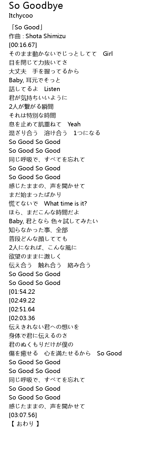 | [02:58.37][02:49.22][01:59.07] | So Good So Good |