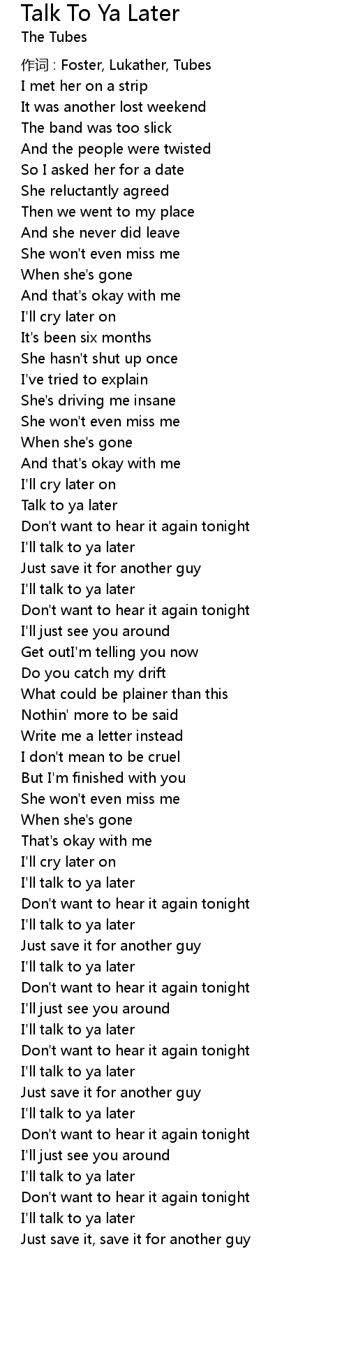 | 歌曲 | Talk To Ya Later |
