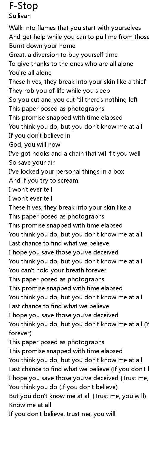 You think you do, but you don't know me at all (You can't hold your breath forever)