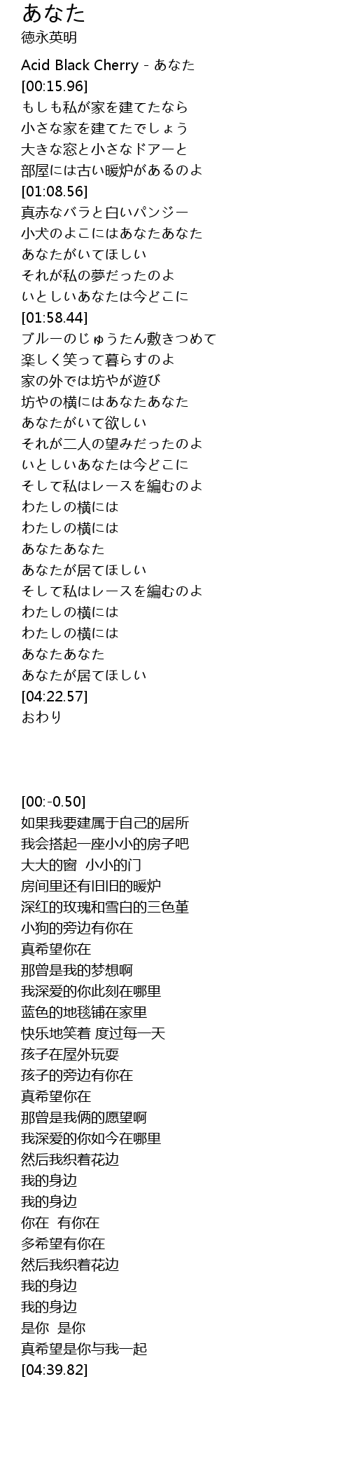 | [02:50.86] | 坊やの横にはあなたあなた |