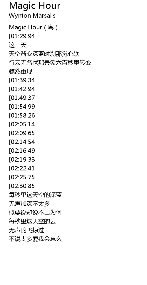 | [00:00.97] | Magic Hour(粤) |