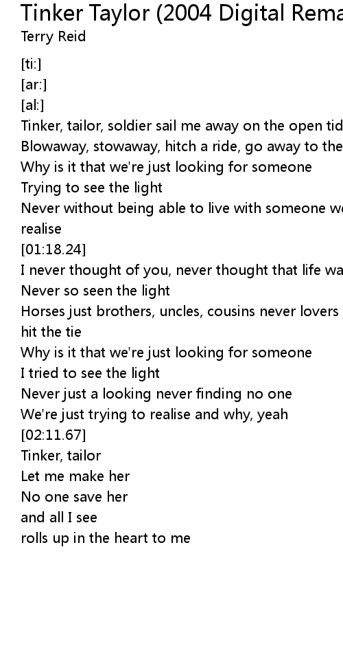Tinker, tailor, soldier sail me away on the open tide |