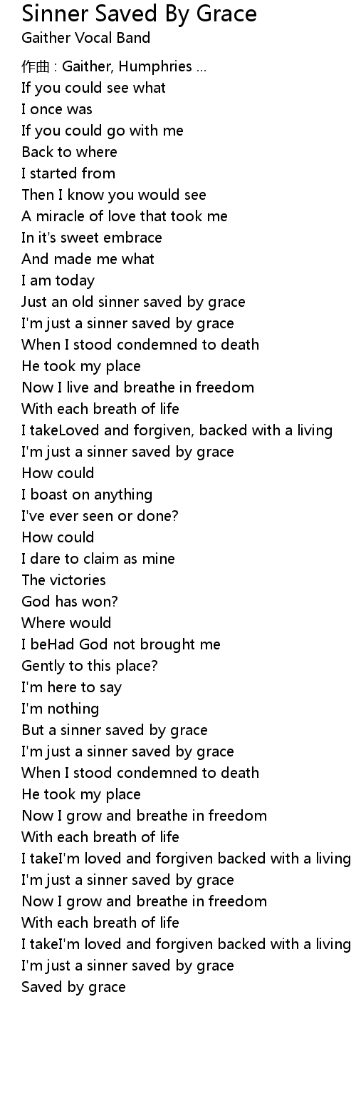 | I' m just a sinner saved by grace | |