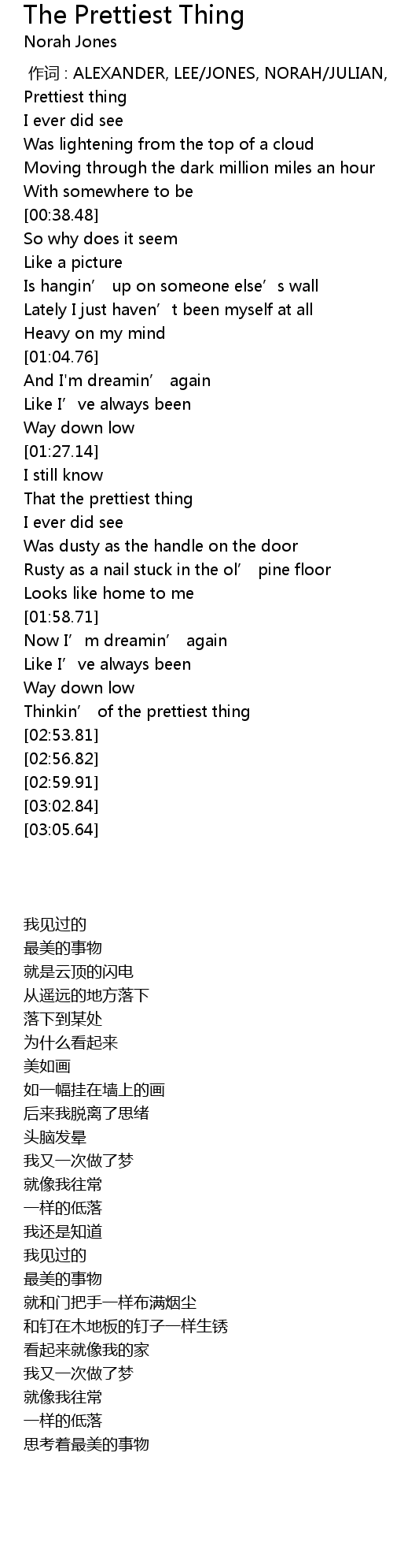 | [00:00.00] | 作词 : ALEXANDER, LEE/JONES, NORAH/JULIAN, RICHARD |