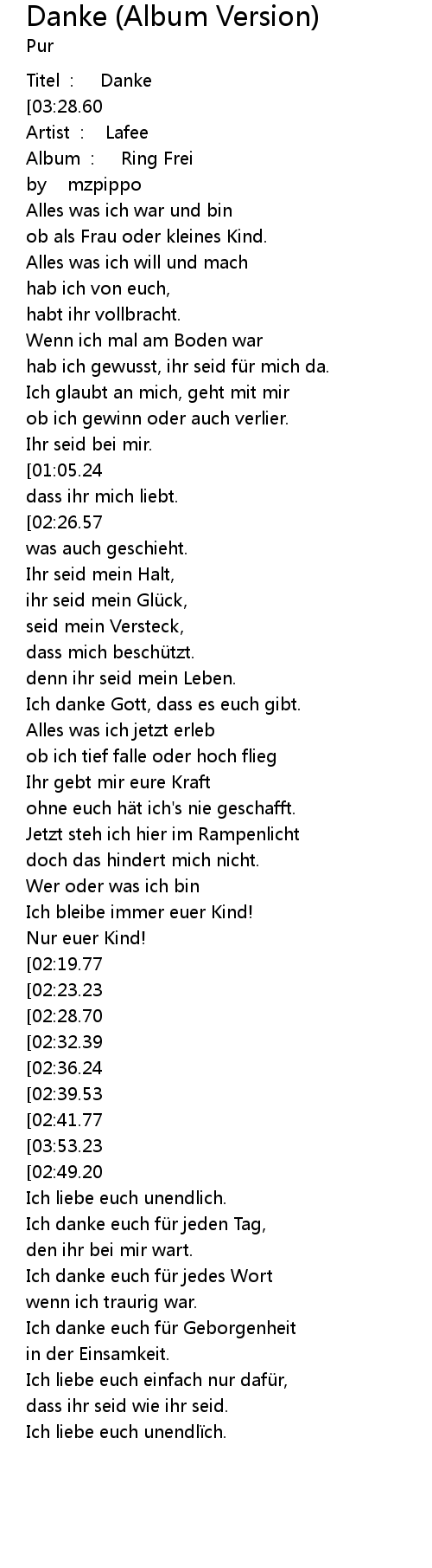 | [00:03.89] | Titel : Danke |