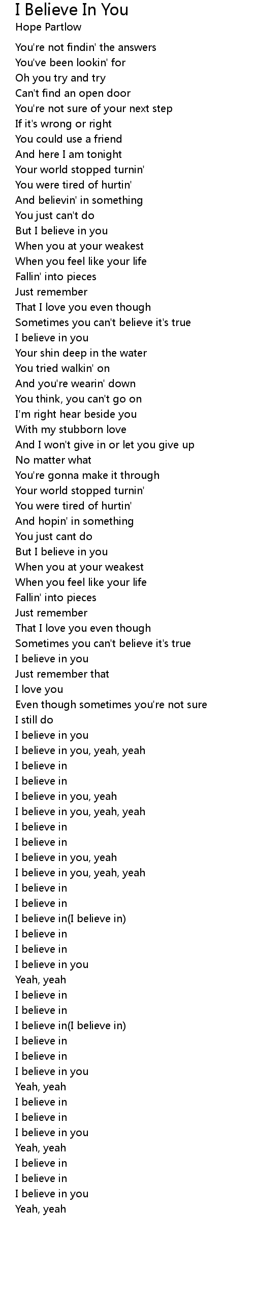 I believe in you, yeah |