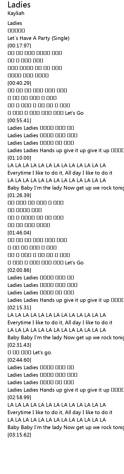 | [02:55.64] | Ladies Ladies Hands up give it up give it up |