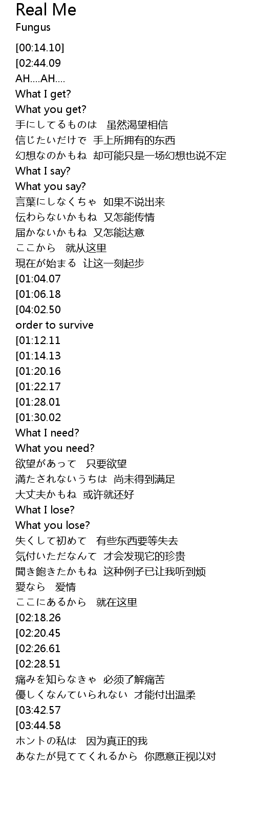 | [04:18.72][04:02.50][03:48.03][03:32.23][02:30.63][02:14.54][01:24.21][01:08.19] | in order to survive |