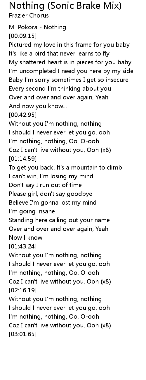 Without you I'm nothing, nothing |