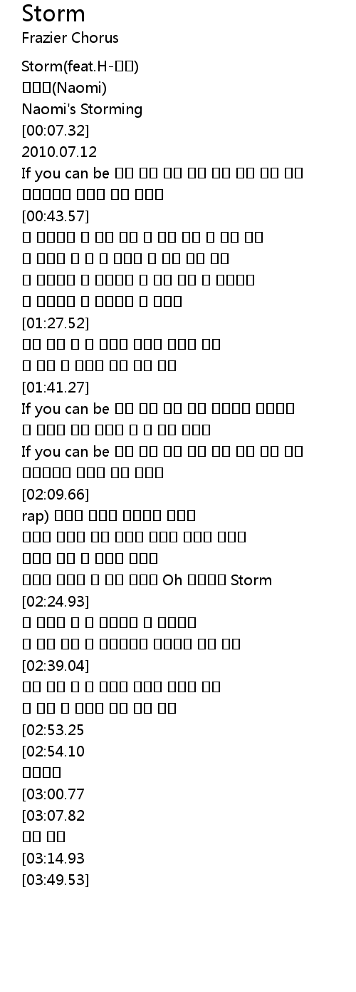 | [02:21.73] | 바람아 불어라 내 몸을 가져봐 Oh 빠져드는 Storm |