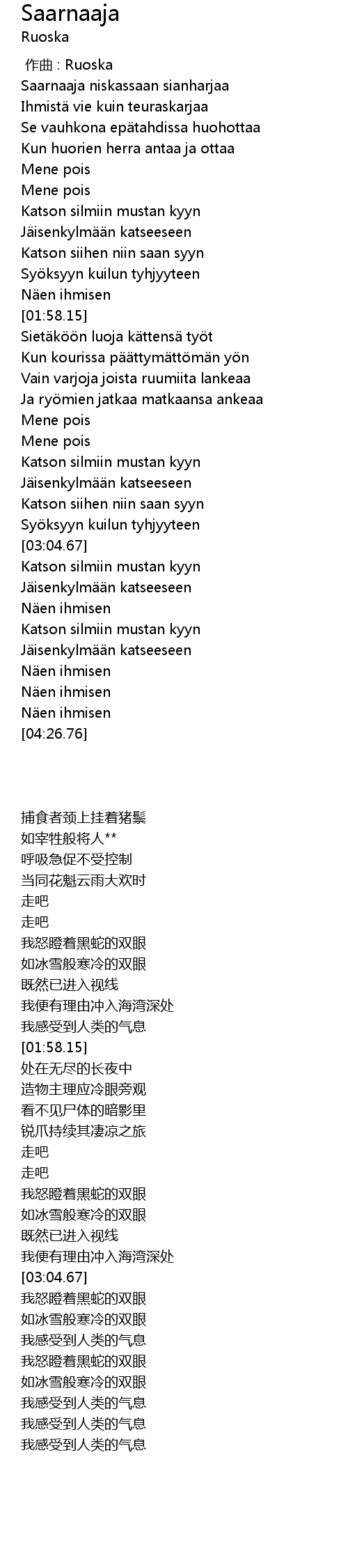 | [04:03.63] | Katson silmiin mustan kyyn |