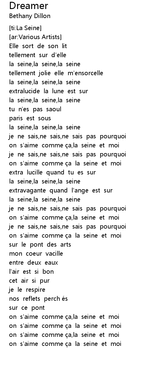 | [01:15.34] | la seine, la seine, la seine |
