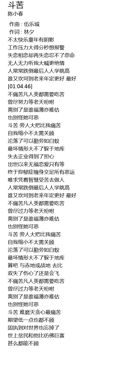 | [02:46.65] | 斗苦 旁人大把比我痛苦 |