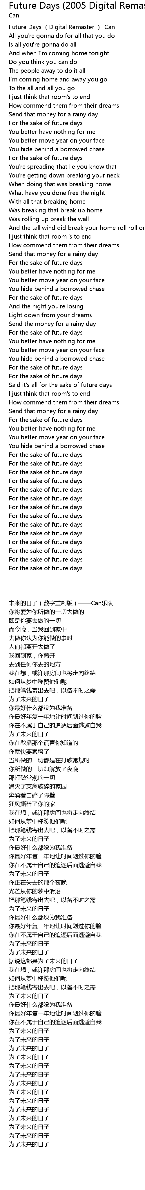 | [00:00.00] | 未来的日子(数字重制版)——Can乐队 |