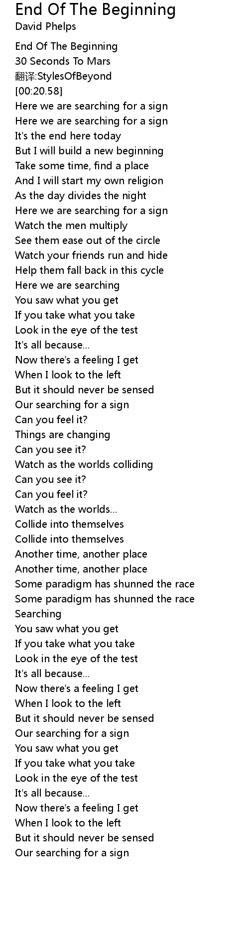 | [00:16.69] | End Of The Beginning |