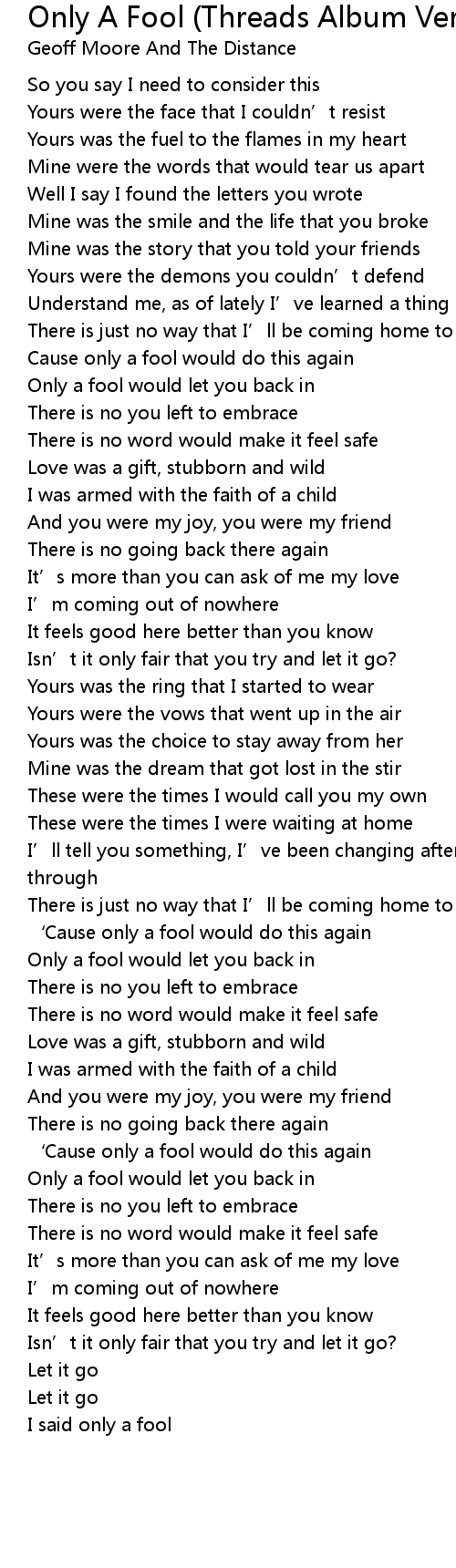 | 歌曲 | Only A Fool (Threads Album Version) |