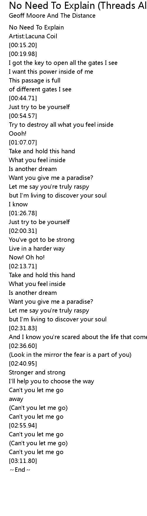 | 歌曲 | No Need To Explain (Threads Album Version) |