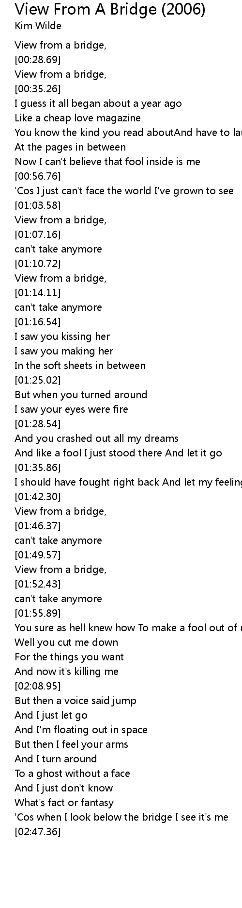 'Cos when I look below the bridge I see it's me |