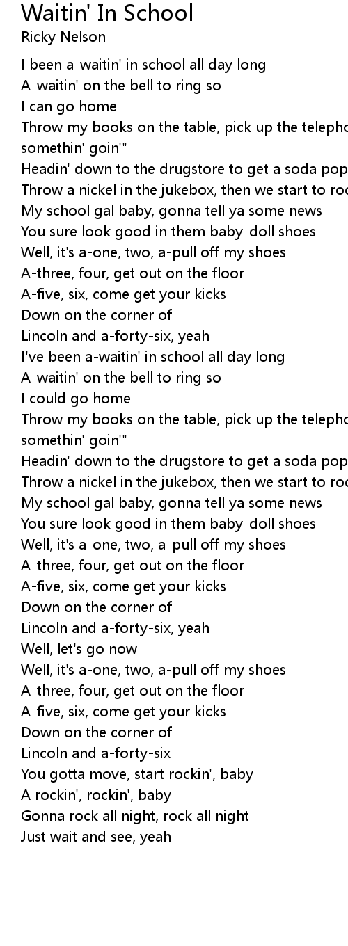 I've been a-waitin' in school all day long |