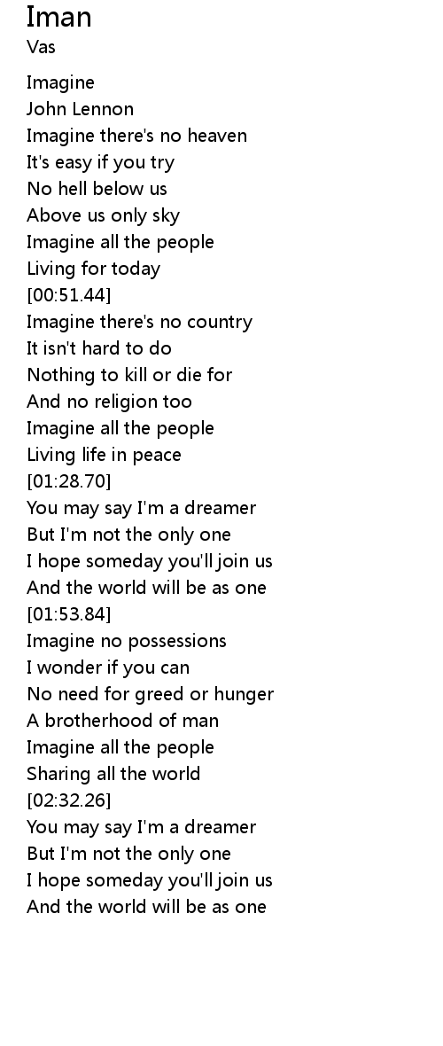 | [01:16.72] | Imagine all the people |