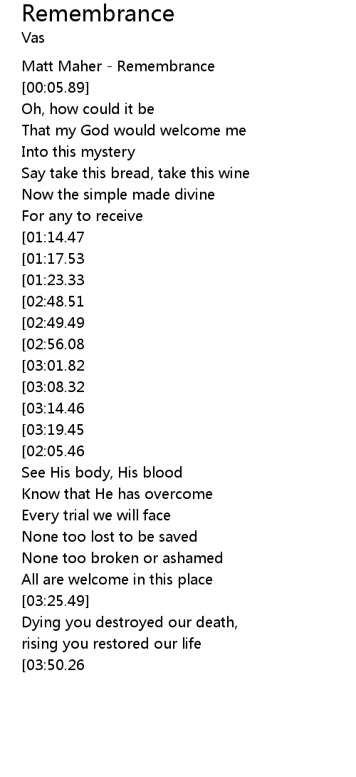 | [00:01.12] | Matt Maher - Remembrance |