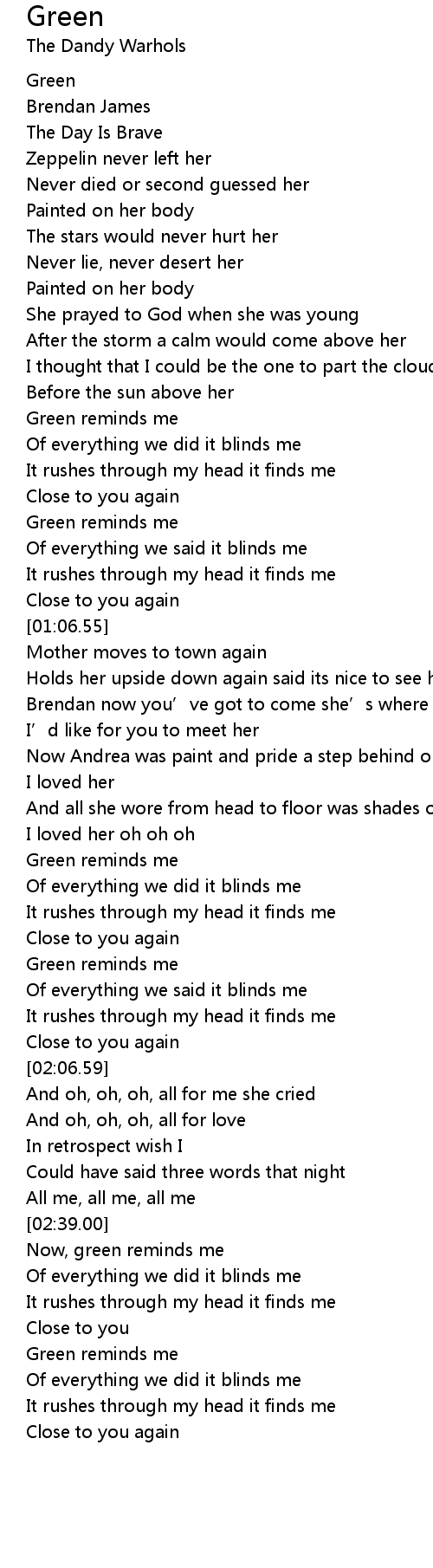 | [00:40.57] | Green reminds me |