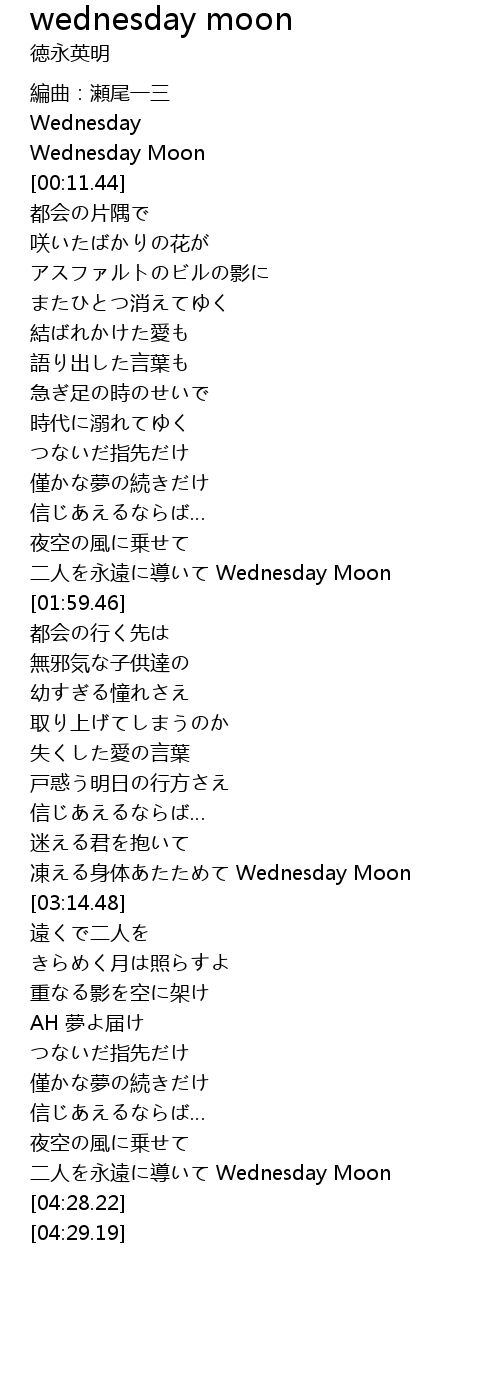 | [01:50.96] | 二人を永遠に導いて Wednesday Moon |
