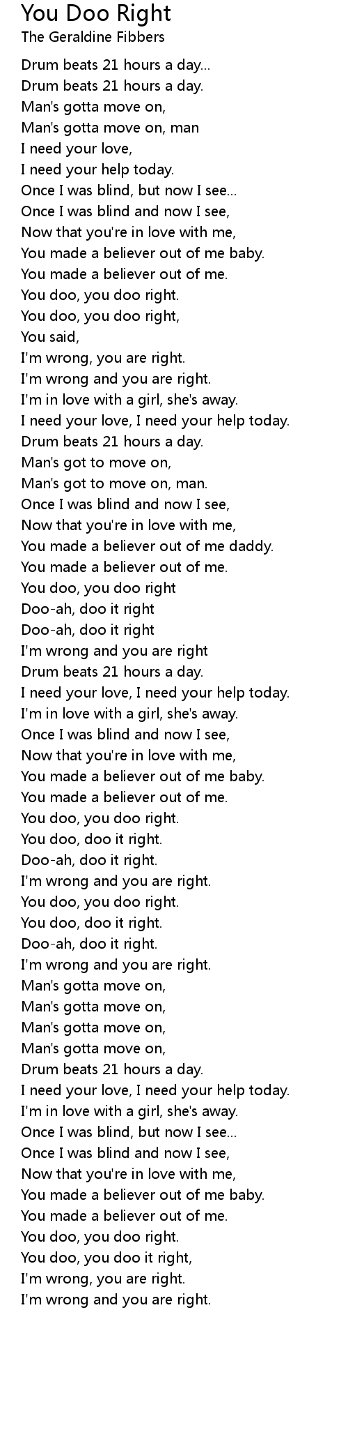You doo, you doo right, |