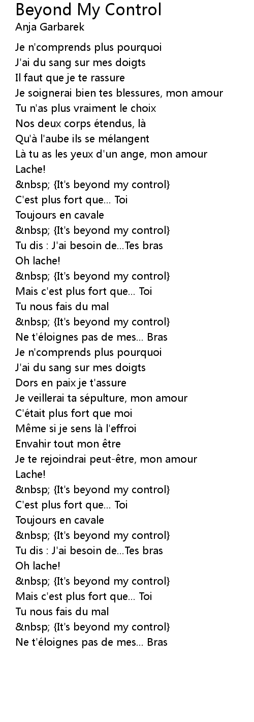 | [01:25.64] | nbsp It' s beyond my control |