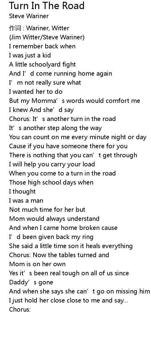 | Chorus: It' s another turn in the road | |