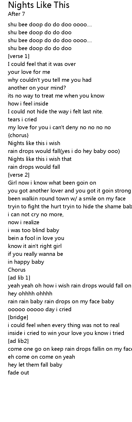 yeah yeah oh how i wish rain drops would fall on my face babe) |